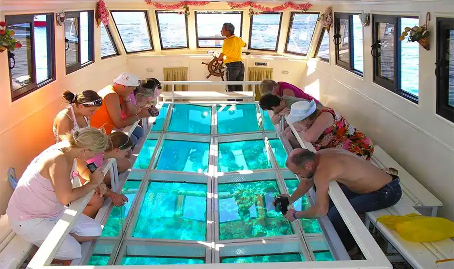 Cruising on a Glass-bottom boat is an exciting activity to experience with your family. It not only allows children but also parents to see rich marine life and colourful coral reefs in a fun, dry, and safe way. The boat has transparent panels in the hull that offer direct views of the underwater world from above. That means you and your kids will not get wet to try such an amazing thing.