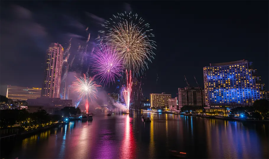 Fireworks Galore - You can expect a stunning fireworks show, particularly along the Chao Phraya River. The massive, choreographed displays with illuminated temples (Wat Arun, Wat Pho, and Wat Phra Kaew) as backdrops, alongside exotic views of the sky, will blow your mind.