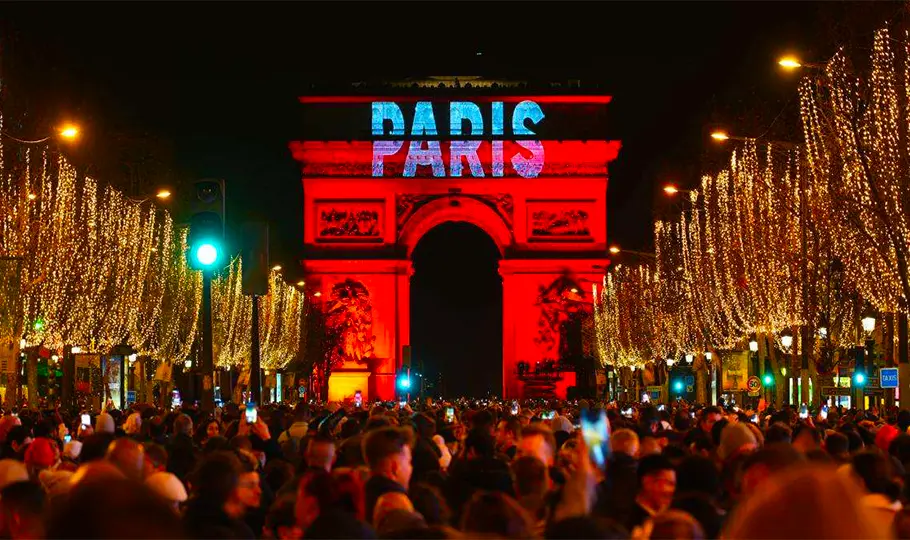 Iconic Light Displays - The city sparkles with ultimate magic in Paris on New Year’s night. You will see the Eiffel Tower twinkling with various lights, fountains shining with bright lights, and streets glowing with colourful decorations. It makes the entire city look like a dreamy site.